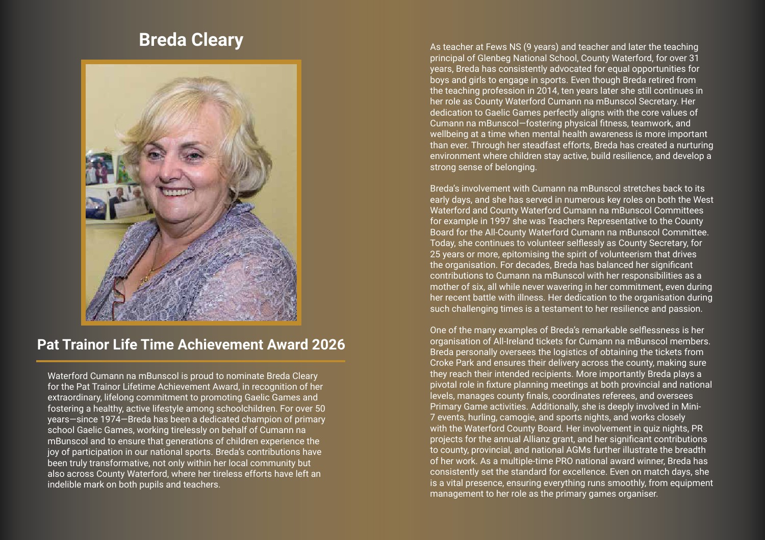 More than anything, Cumann na mBunscol is about children and giving boys and girls the opportunity to play our National Games with their friends in a safe, enjoyable setting. We are blessed that so many teachers are willing to devote time to training school teams. We are also fortunate that many teachers remain involved in Cumann na mBunscol after retirement and ensure the smooth running of our activities. Míle buíochas to all the teachers who give so generously of their time and expertise at local, county, provincial and national level.